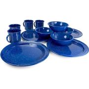 The Alpine Mountain Gear 4 Person Enamel Tableware Set is a perfect companion for any outdoor dining experience, from camping trips to picnics. This comprehensive set includes everything needed to serve four people, making it an essential item for family outings or group camping. Each piece is crafted from durable steel with a double-coated blue enamel finish, ensuring longevity and resistance to chipping and scratches.