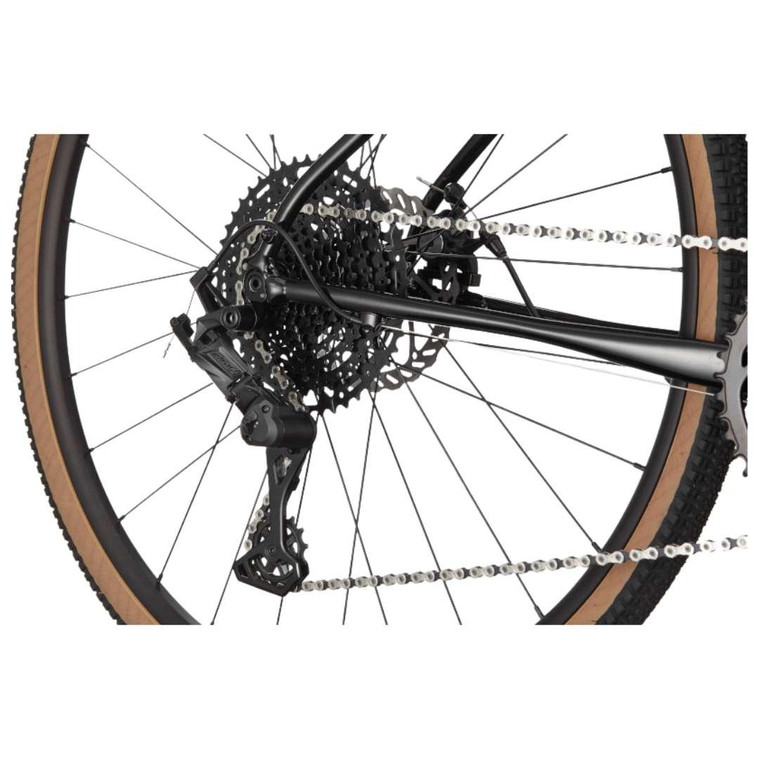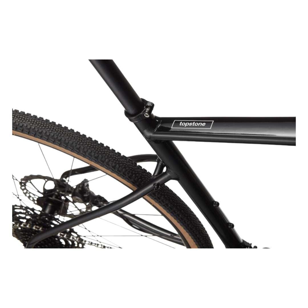 The Cannondale 2024 Topstone 4 Road Bike - Black is a high-quality gravel bike designed for versatility and performance on various terrain. It features a lightweight aluminum frame with endurance geometry, providing a comfortable and efficient riding position for long hours in the saddle. The Topstone 4 is equipped with a Shimano Sora 2x9-speed drivetrain, offering smooth and reliable shifting over a wide range of gears. It also features powerful hydraulic disc brakes for confident stopping power in all conditions. With its wide tire clearance and mounts for racks and fenders, the Topstone 4 is a great choice for gravel riders looking for a capable and reliable bike.