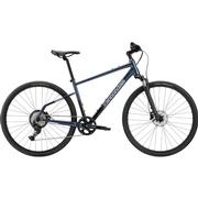 The Cannondale Quick CX 3 Bike is a versatile hybrid option designed for comfort and performance across a variety of surfaces. It features a lightweight C3 alloy frame for smooth, responsive handling, along with a Suntour 50mm suspension fork to help absorb bumps on rough paths. Multi-surface tires provide reliable traction on both pavement and light trails. The Shimano ESSA U2000 8-speed drivetrain delivers consistent shifting, while hydraulic disc brakes offer dependable stopping power. An Intellimount stem allows for convenient phone mounting, making it a practical choice for commuting, fitness rides, or casual off-road use.
