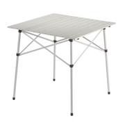 The Coleman Compact Roll-Top Aluminum Camping Table is a practical and portable solution for outdoor dining and activities. Its aluminum slat top rolls up for compact storage, and the strong steel frame ensures durability. The snap-together design allows for easy setup and breakdown, making it convenient for camping, tailgating, or backyard gatherings. With dimensions of 27.6 x 27.6 x 27.6 inches, it comfortably seats up to four people. The included carry bag facilitates easy transport, and the table comes with a 1-year limited warranty.
