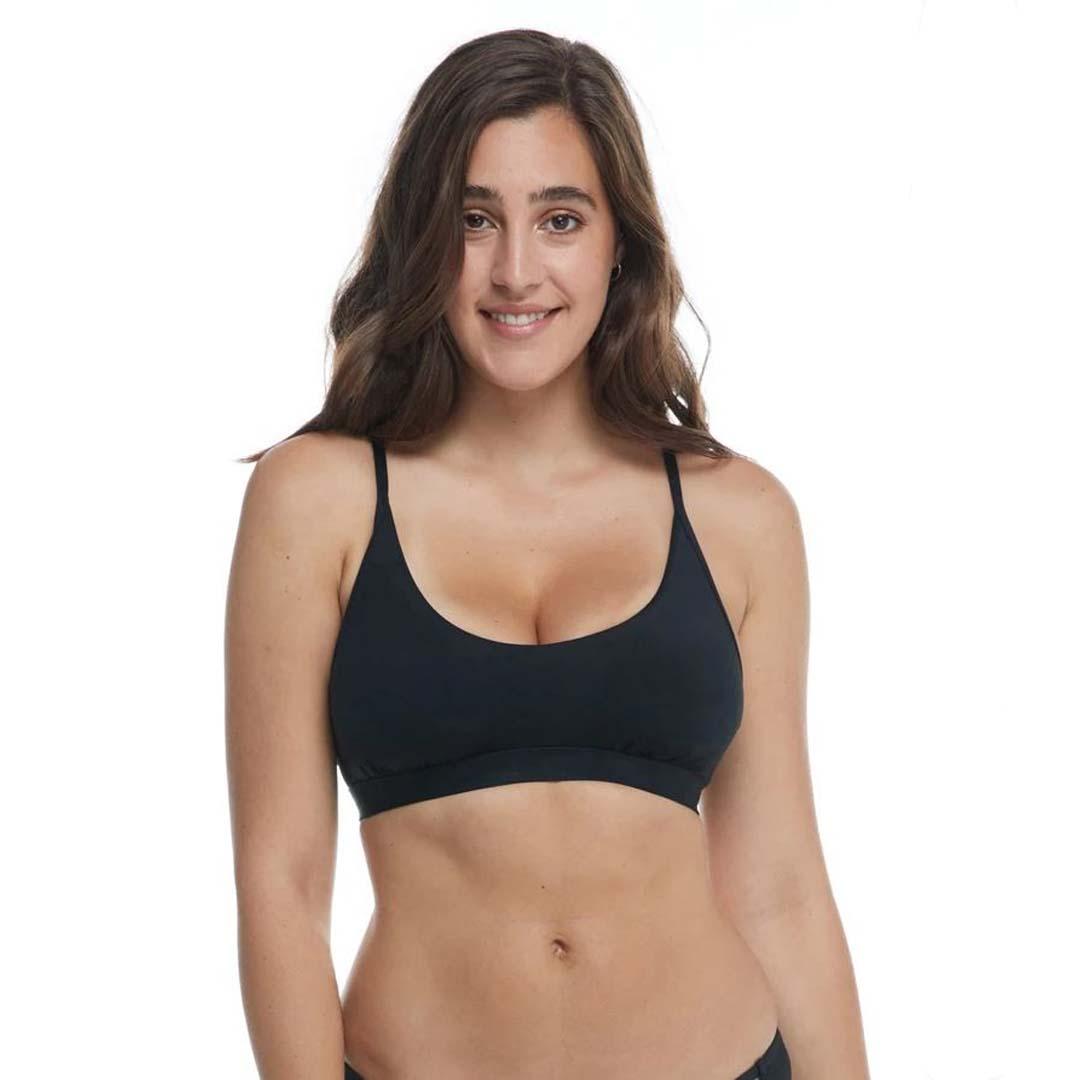 Our Black Licorice collection will have you feeling like a kid in a candy store, your eyes widening with each new adventure that comes to life inside your mind. Will you bury your fingers and toes in the black volcanic sands of Hawaii, crash your way through white-capped waves on the back of an inky stallion, lose track of time and let the hours melt away under the cover of a pitch-dark sky? This line of dipped-in-midnight swimwear is your key to sweet, sweet imagination. Give a warm welcome to Alexa, the newest member of our D-cup-and-up family! This top’s simple scoop neck is styled after a classic tank, alongside super-supportive elements like a two-way adjustable tie back and removable soft cups if you need ‘em.