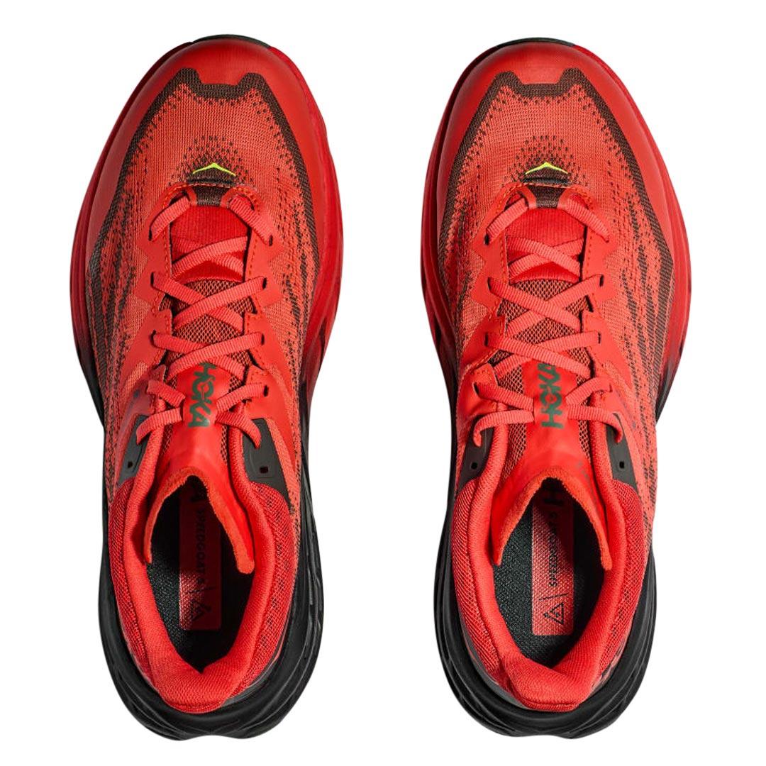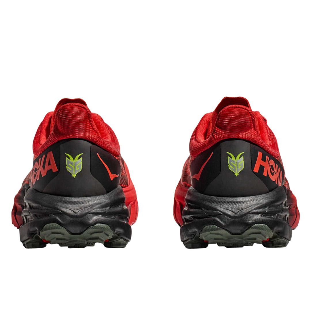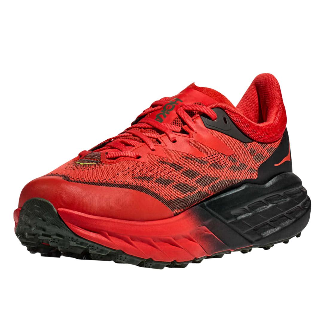 The shoe maintains its excellent grip with Vibram Megagrip and Traction Lug technology, providing enhanced traction on loose soil. Additionally, it offers a foot-cradling heel bolster, a rubber toe cap, and a gusseted tongue to keep trail debris out of your shoes, ensuring a more comfortable and hassle-free trail running experience. If you're looking for a reliable trail running shoe to tackle challenging and wet conditions, the Speedgoat 5 is a great choice.
