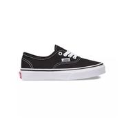 The Vans kids' Black/True White Authentic Shoes are an original and now iconic style, is a simple low top, lace-up with durable canvas upper, metal eyelets, Vans flag label and Vans original Waffle Outsole